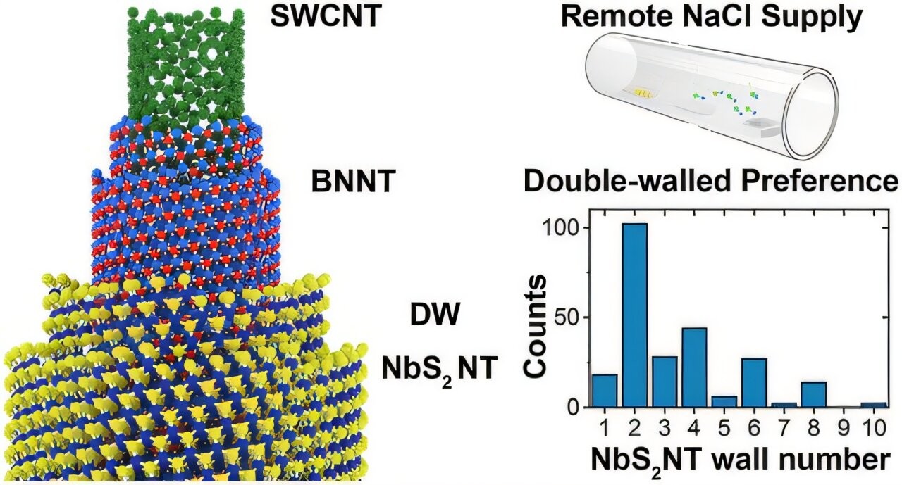 Tijdens de observatie kwamen er nog meer verrassingen naar voren. In plaats van voornamelijk enkellaagse buizen te vormen, gaven deze nanobuisjes de voorkeur aan een structuur met dubbele schaal, vergelijkbaar met geneste rietjes.